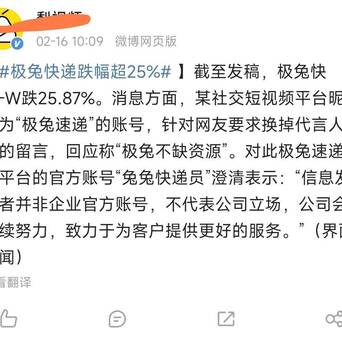 【城门失火殃及池鱼,极兔股价跳水】极兔因为梅西这个事情遭大罪了,先是短视频平台被曝出不当言论,然后就是网友和企业开始带头拒绝极兔快递。